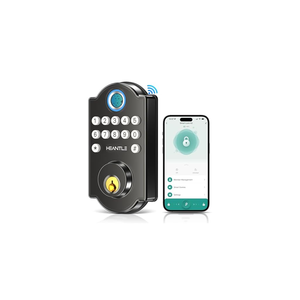 Smart Door Lock WiFi Deadbolt: HEANTLE Keyless Entry Front Door Lock Fingerprint Electronic Digital Keypad Deadbolt with Alexa Voice App Remote Control Auto Lock Matte Black
