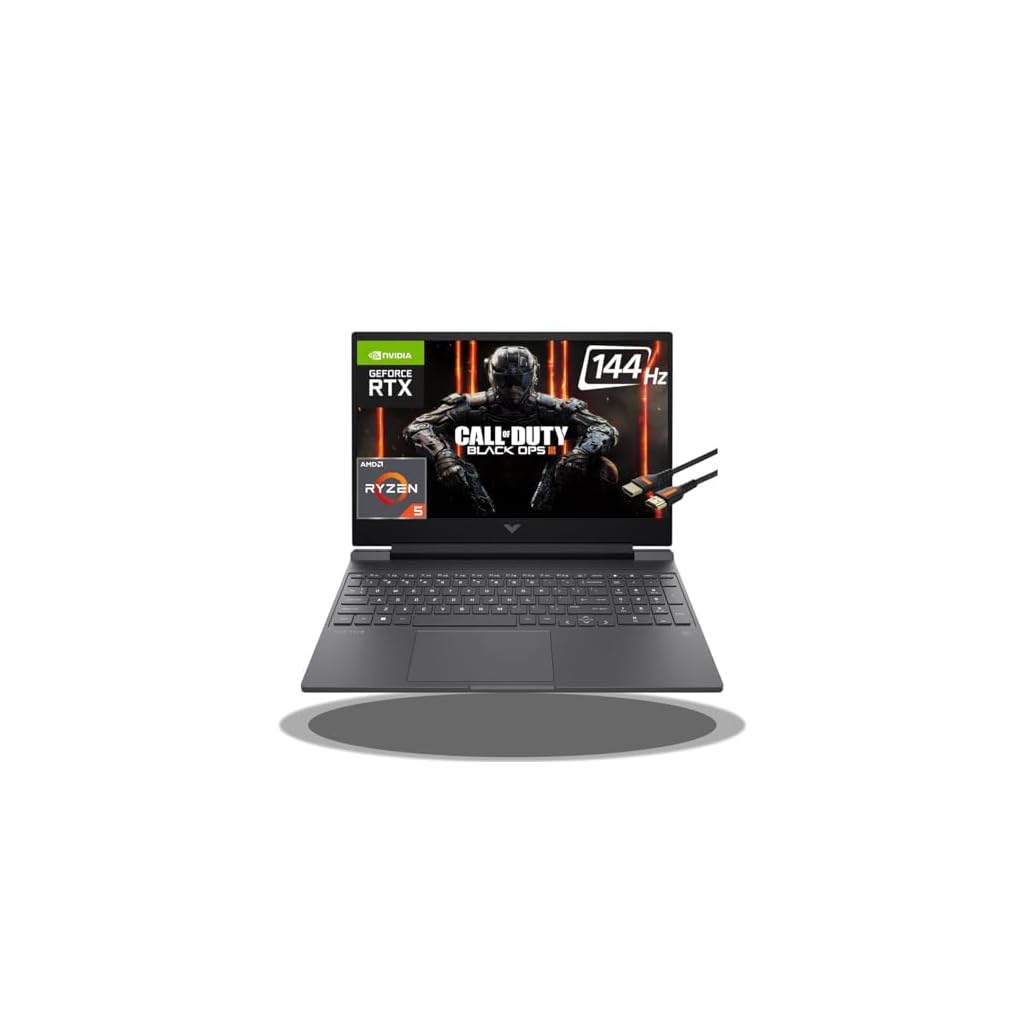 HP Victus 15 Gaming Laptop 15.6″ FHD IPS 144Hz AMD 7000 Ryzen 5 7535HS (Beats i7-11800H) GeForce RTX 2050 4GB Graphic Backlit USB-C B&O Win11 Black + HDMI Cable (8GB RAM | 512GB PCIe SSD)