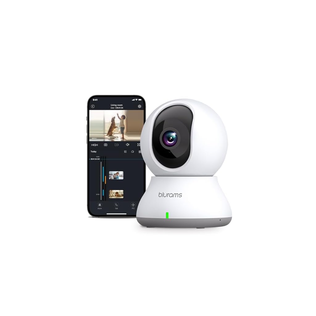 blurams Security Camera, 2K Indoor Camera 360° Pet Camera for Home Security w/Motion Tracking, Phone App, 2-Way Audio, IR Night Vision, Siren, Works with Alexa & Google Assistant(2.4GHz ONLY)