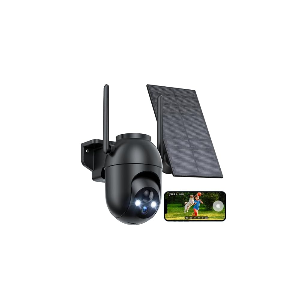 Security Cameras Wireless Outdoor: Solar Cameras for Home Security Battery Wifi Cameras Outside Surveillance Camera PTZ 360° CCTV Camera System with Floodlight Color Night Vision Motion Sensor Alarm
