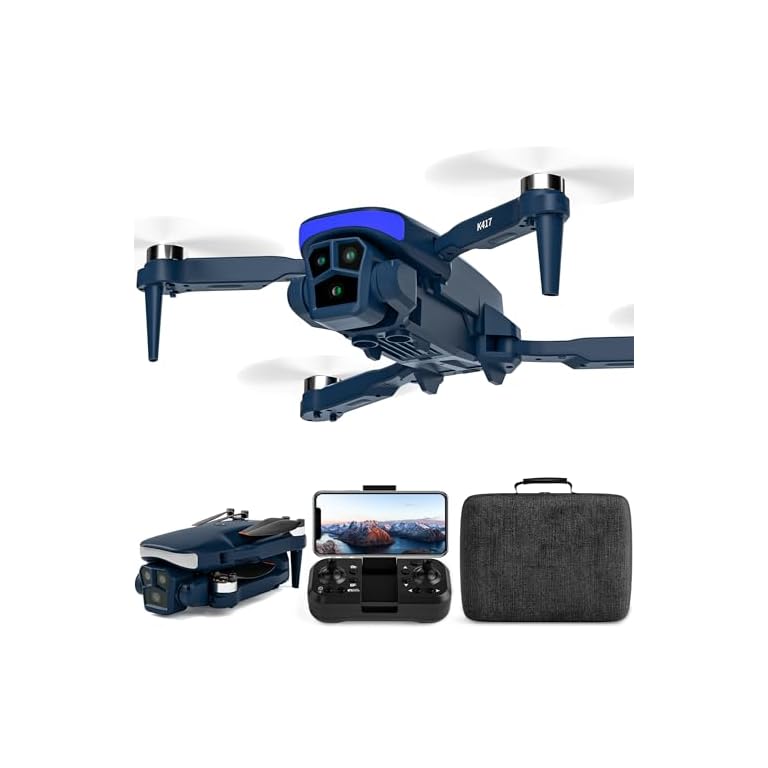 K417 Drone with Camera 1080p HD,90° Electric Adjustable Lens,Blue LED Lights AIdrones with Dual Cameras for Adults,Remote Control Quadcopter with Altitude Hold for Beginners,Gestures Selfie,Carry Case