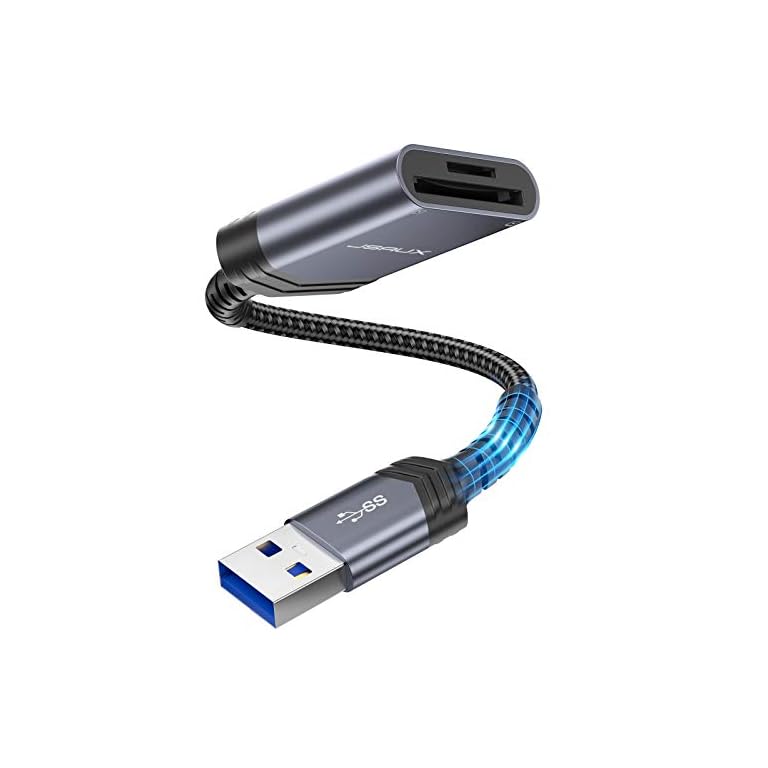 SD Card Reader, JSAUX USB 3.0 SD to SD/Micro Card Adapter 5Gbps 2TB Capacity TF SD Micro SD SDXC SDHC MMC RS-MMC Micro SDXC Micro SDHC UHS-I for Windows Linux Chrome Read 2 Cards Simultaneously-Grey