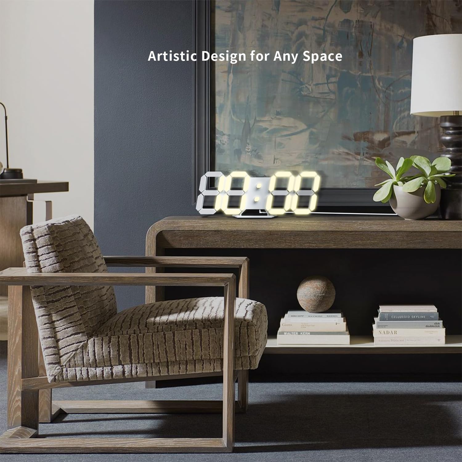 [Modern 3D Design]: The clock has a modern and aesthetic 3D design, making it a stylish addition to any room. It can be placed on a desk or mounted on the wall.