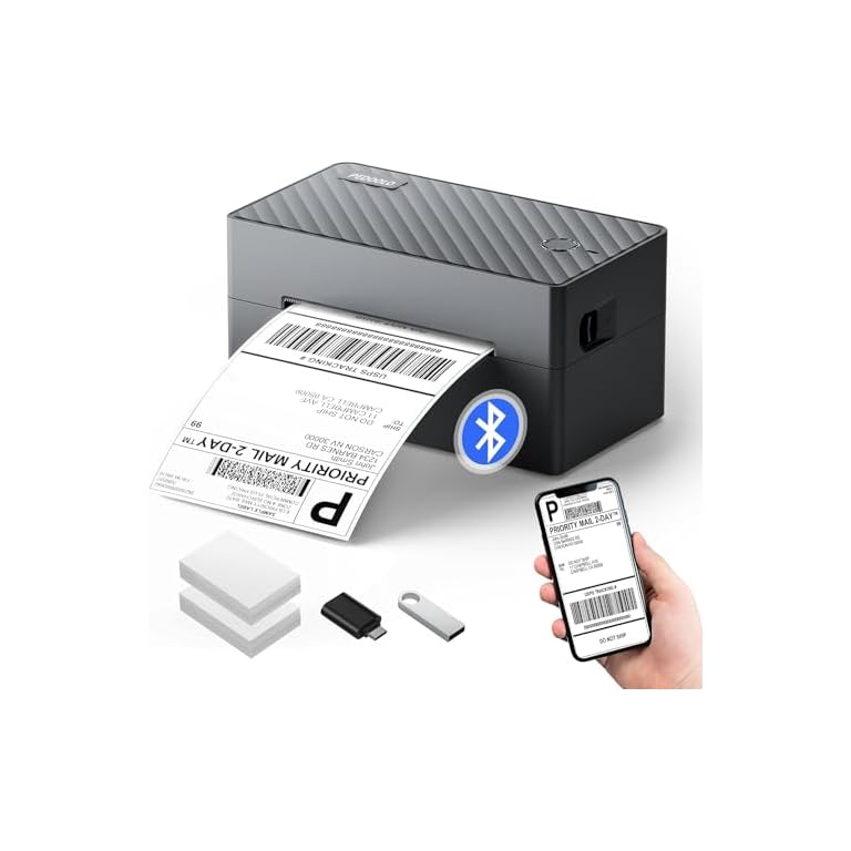 Label Printer, Bluetooth Shipping Label Printer, 4×6 Thermal Printer for Shipping Packages, Compatible with Android. iPhone.Windows, Mac, Chromebook, Amazon, eBay, UPS.USPS, FedEx, Shopify