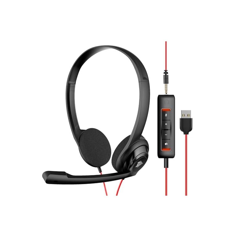 Headset with Mic for PC, USB Headset with Noise Cancelling Microphone, Computer Headset for Teams, Zoom, Skype Calls(Black)