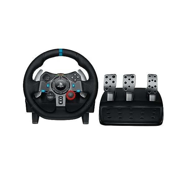 Logitech G29 Driving Force Racing Wheel and Floor Pedals, Real Force Feedback, Stainless Steel Paddle Shifters, Leather Steering Wheel Cover for PS5, PS4, PC, Mac – Black