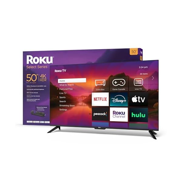 Roku Smart TV – 50-Inch Select Series 4K HDR RokuTV Enhanced Voice Remote, Brilliant 4K Picture, Automatic Brightness, & Seamless Streaming – Live Local News, Sports, Family Entertainment
