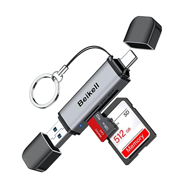SD Card Reader, Beikell 4 in 1 Dual Connector (USB&USB C) USB C to Micro SD Memory Card Reader OTG Adapter -Supports SD/SDHC/SDXC/MMC/Micro SDXC/MS/MS Pro/CF, Compatible with Windows, OS