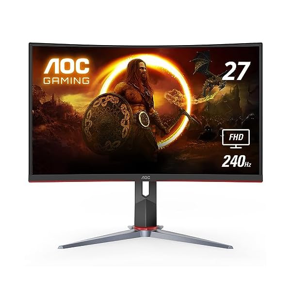 AOC C27G2Z 27″ Curved Frameless Ultra-Fast Gaming Monitor, FHD 1080p, 0.5ms 240Hz, FreeSync, HDMI/DP/VGA, Height Adjustable, 3-Year Zero Dead Pixel Guarantee, Black, Xbox PS5 Switch