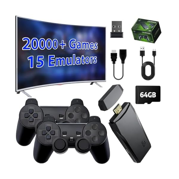 Upgrade Wireless Retro Game Console Stick, ZeroStory Retro Video Game Console Stick Built in 20000+ Games with 15 Emulators, 4K HDMI Output with 2 2.4G Wireless Controllers (64GB Memory Card)