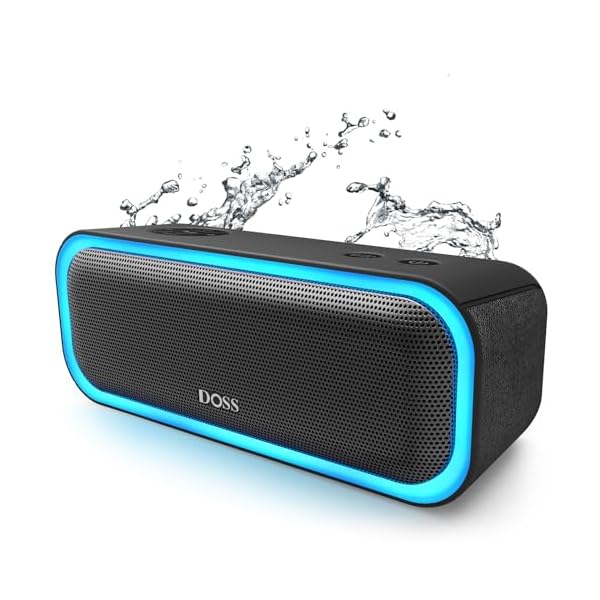 DOSS SoundBox Pro Bluetooth Speaker with 20W Stereo Sound, Active Extra Bass, IPX6 Waterproof, Bluetooth 5.0, TWS Pairing, Multi-Colors Lights, 20 Hrs Playtime, Portable Speaker for Beach, Outdoor
