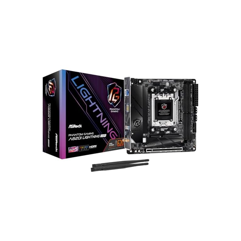 ASRock A620I Lightning WiFi AM5 Ryzen7000 AMD A620 SATA 6Gb/s Mini-ITX Dual DDR5 7200 96GB HDMI