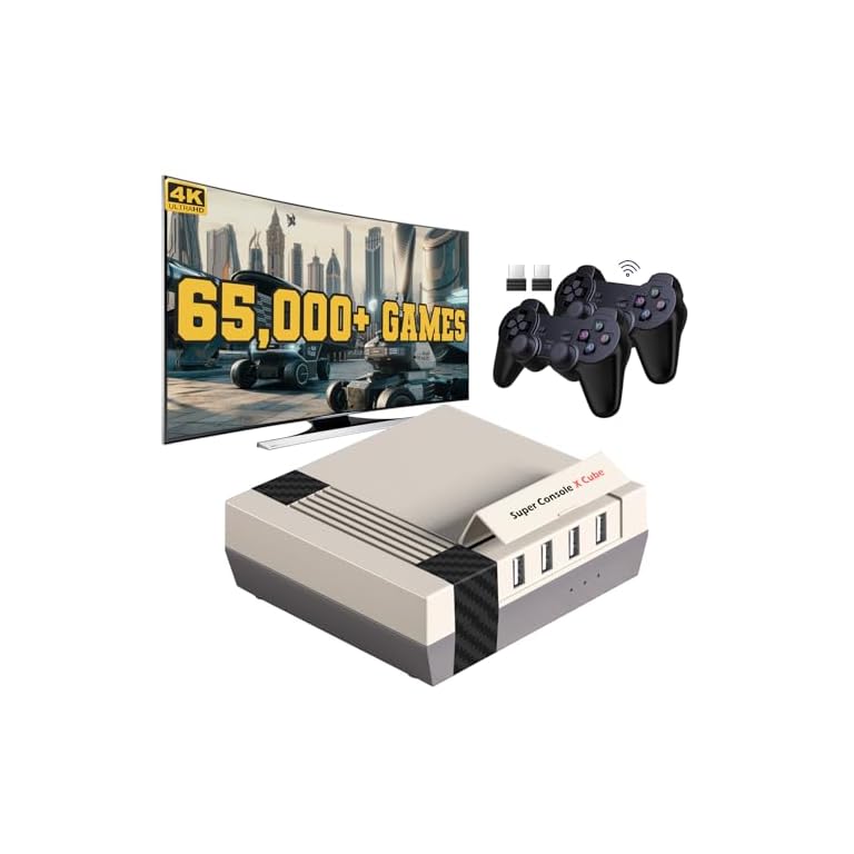 Kinhank Video Games Consoles 256G, Super Console X Cube Retro Game Console with 65000+ Classic Games, 4 USB Port,Up to 5 Players, 2 Wireless Game Controllers