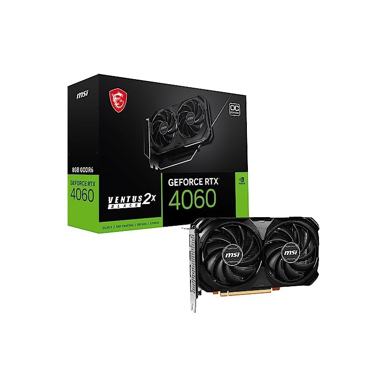 MSI Gaming GeForce RTX 4060 8GB GDRR6 Extreme Clock: 2505 MHz 128-Bit HDMI/DP Nvlink TORX Fan 4.0 Ada Lovelace Architecture Graphics Card (RTX 4060 Ventus 2X Black 8G OC)