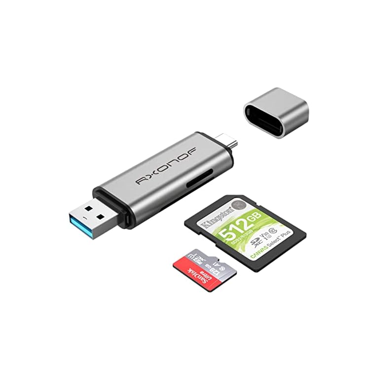 SD Card Reader, Rxonof USB 3.0 and USB C Card Reader 2-in-1 Memory Card Reader with Dual Connectors for SDXC, SDHC, SD, MMC, RS-MMC, Micro SDXC, Micro SD, Micro SDHC Card, and UHS-I Cards