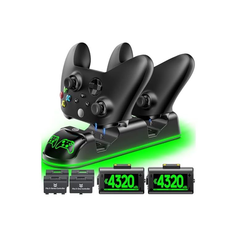 OIVO XSX Controller Charger Station with 2 Packs 4320mWh Rechargeable Battery for Xbox Series X/S/One/Elite/Core Controller, Charging Dock with 4 Packs Covers (1800mAh)
