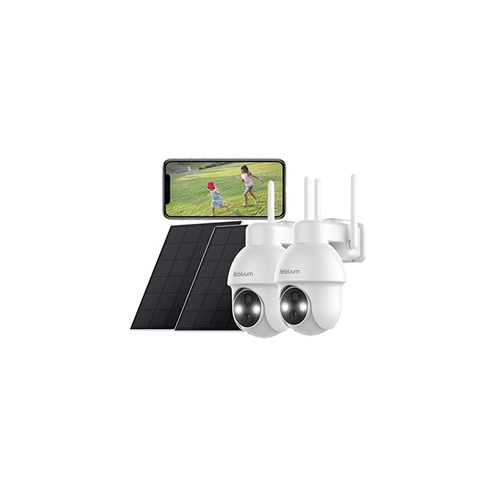 【2K】 Solar Powered Security Cameras Wireless Outdoor, 2 Pack, Pan Tilt 360°WiFi Camera with Color Night Vision/PIR Sensor/2-Way Audio/Alexa/Google Assistant
