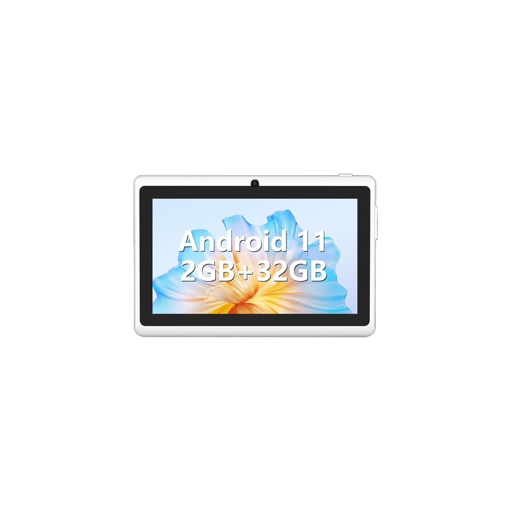 Android Tablet 7 Inch, Android 11 Tablet, 2+4GB RAM 32GB ROM, Quad-Core Processor, Dual Camera, WiFi, 3.5mm Earphone Jack, FM Bluetooth, 128GB Expand, GMS Certified Tablet – White