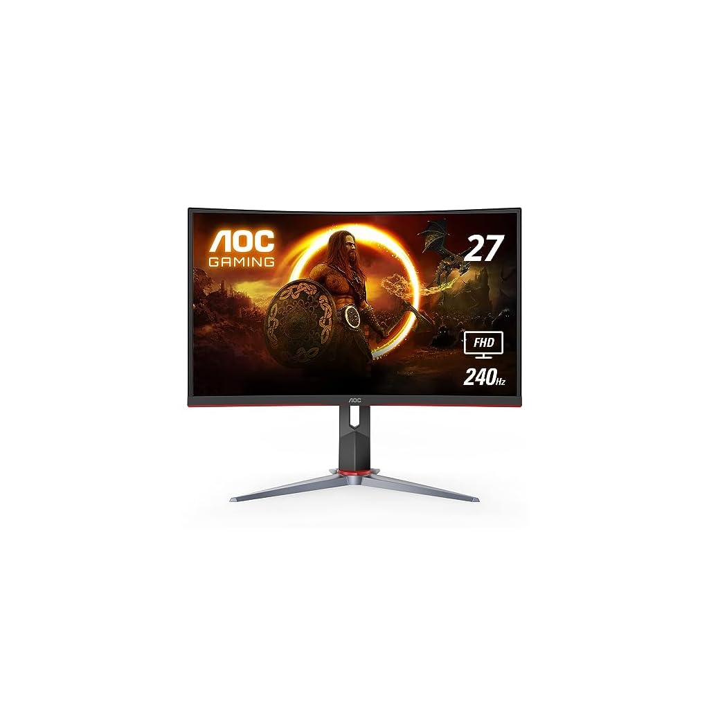 AOC C27G2Z 27″ Curved Frameless Ultra-Fast Gaming Monitor, FHD 1080p, 0.5ms 240Hz, FreeSync, HDMI/DP/VGA, Height Adjustable, 3-Year Zero Dead Pixel Guarantee, Black, Xbox PS5 Switch