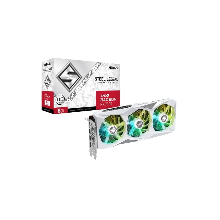 ASRock AMD Radeon RX 7600 Steel Legend 8GB OC GDDR6 128-bit 0dB Silent Cooling Graphics Card DisplayPort 7680 x 4320 HDMI 18 Gbps 3 Fans PCI Express 4
