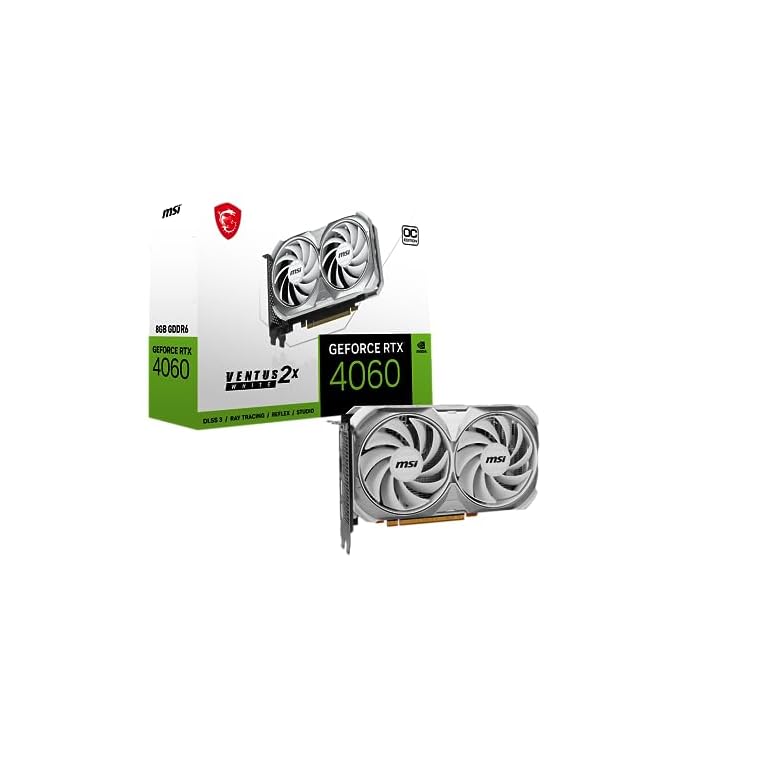 MSI Gaming GeForce RTX 4060 8GB GDRR6 Extreme Clock: 2505 MHz 128-Bit HDMI/DP Nvlink TORX Fan 4.0 Ada Lovelace Architecture Graphics Card (RTX 4060 Ventus 2X White 8G OC)