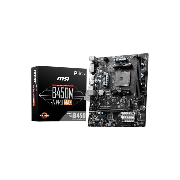 MSI B450M-A PRO MAX II ProSeries Motherboard (mATX, Supports AMD 5000/4000/3000/2000/1000 Series AM4 Processors, M.2, SATA 6G, USB 3.2 Gen 1, DDR4, HDMI/DVI, 2.5Gbps LAN)