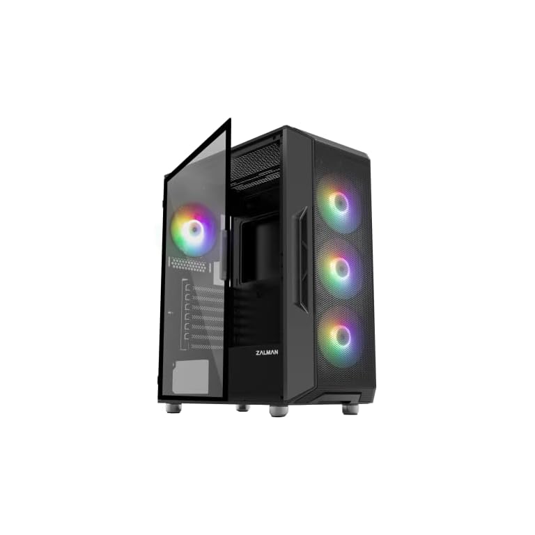 Zalman i3 NEO ATX Mid Tower Gaming PC Case – 4 x 120mm Fixed RGB Fans Preinstalled – Mesh Front Panel for High Airflow – Tempered Glass Side Panel, Black