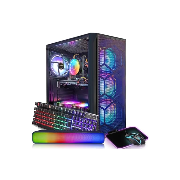 STGAubron Gaming Desktop PC, Intel Core i5 3.2G up to 3.6G, Radeon RX 560 4G GDDR5, 16G RAM, 512G SSD, 600M WiFi, BT 5.0, RGB Fan x 3, RGB Keyboard & Mouse & Mouse Pad, W10H64
