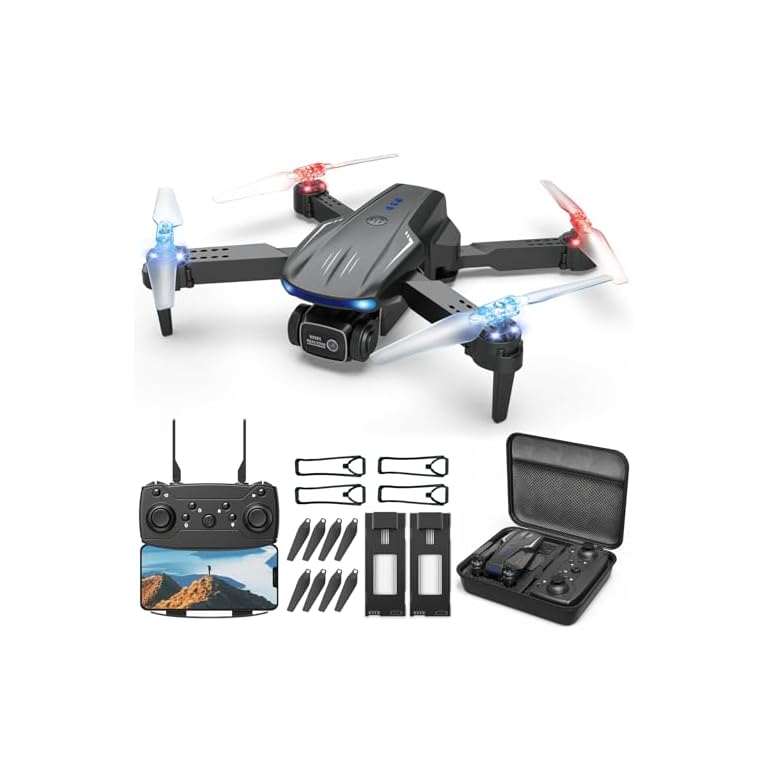 Drone With 1080P Camera for Adults Beginners Kids, Foldable RC Quadcopter, Toys Drone Gifts, 1080P FPV Video, 2 Batteries, Carrying Case, One Key Start, Headless Mode, Waypoints fly, 360° Flips