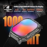 ⌚2.0″ Ultra Large AMOELD display – The screen has up to 100% RGB color gamut, brightness up to 1000NIT, the display is clearer and more gorgeous. “At all times On Display” mode, where the watch At all times shows the time even when its “asleep”, the display never sleeps.