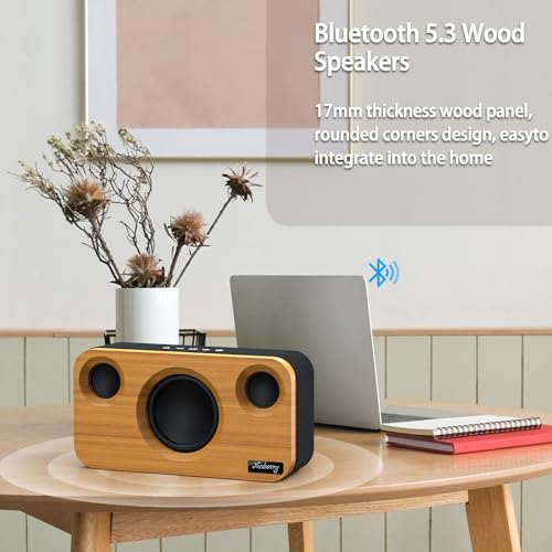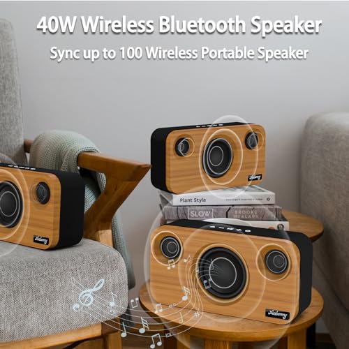 Bluetooth Speaker with Deep Bass, 40W(Peak) Wireless Portable Speaker with TWS, AUX, TF Card, Stereo Sound Wood Home Audio Sync up to 100 Bluetooth 5.3 Speakers For Home Party, Outdoor Camping