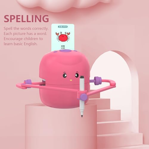Interactive Educational Drawing Robot for Kids – Montessori Learning Toy with 100 Word Cards, Voice Interaction, Ages 5+ (Pink)