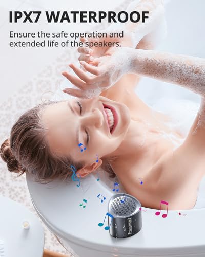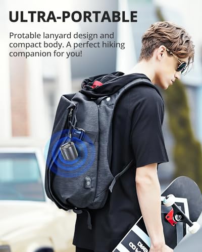Tronsmart Nimo Portable Bluetooth Speaker, Super-Compact Design, Metal Craft, Mini Speaker with Lanyard, IPX7 Waterproof for Shower, Travel, 12 Hours Battery, Stereo Pairing, Hands-Free Call, Black