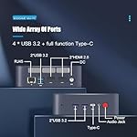 【Plug and Play】-Measuring only 4.96×4.4×1.6 inches. Simply connect this micro computer to a monitor, keyboard, and mouse, and you’re good to go. It features 4x USB3.2, 2x HDMI2.0, 1x Type-C (DP/DATA/PD), 1x 2.5G LAN ports, and a 3.5mm Audio Jack. Stay connected with ease the usage of WiFi5 (867Mbps) and BT4.2 for fast data transfer and seamless device pairing.