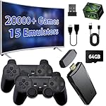 【Built-in 20000+ Classic Games】This wireless TV game console built in 20000+ rich games, is pre-install 15 emulators, and pack with 64GB TF card. No need to download and install by yourself, no internet required, you can play 20000+ classic games just by connecting to the TV.