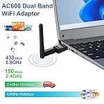 WiFi Antenna,WiFi Adapter Wireless,600Mbps Dual Band 2.4G & 5G(150Mbps/433Mbps),Dual 5dBi Antennas High Gain 802.11AC,Supports Windows Vista/Win 11/10/8/7