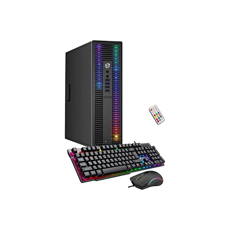 HP EliteDesk Desktop RGB Lights Computer AMD A-Series Processor, Windows 10 Pro 64-bit, Wi-Fi, Gaming PC Keyboard & Mouse (Renewed) (8 GB RAM, 256 GB SSD)